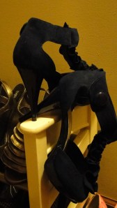 Speaking of finagling…I am the master at pulling out summer dresses this time of year and fashioning them together with cold weather garments so they’re warm enough to wear. I wish I could do that with my metallic ruffle wedges, cage-style “Carrie” shoes and sling back cork soled heels. Somehow tights paired with them just doesn’t quite work.